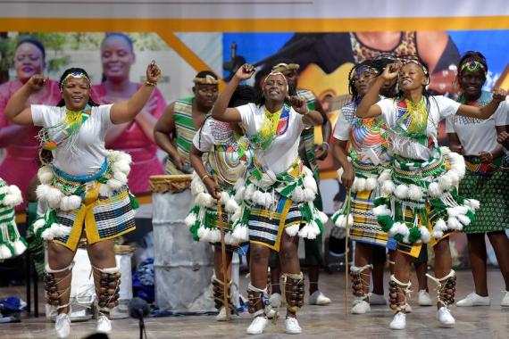 Sebonda Arts Group performs Sebirwa traditional dance during the 13th Annual National Arts Festival for Traditional Song and Dance at Sir Seretse Khama Barracks in Gaborone, Botswana, July 13, 2024. (Photo by Tshekiso Tebalo/Xinhua)"It is one of the most dynamic sectors, offering opportunities, particularly for developing countries, to emerge into high-growth areas to support and attract investment, entrepreneurship, and innovation, thus promoting cultural diversity and well-being," said Rakgare.Held under the theme "The Creative Economy: Botswana's Economic Future Redefined," the event featured about 32 traditional groups from various parts of Botswana. The performances demonstrated how past generations used to heal the ill, pray for rain, and learn how to plow.Rakgare said the National Arts Festival aims to highlight the richness and uniqueness of Botswana's cultures, assist creatives in realizing their full potential and contribution to the economy, and promote economic diversification.This year's event attracted more than 14,000 artists from across the country, promoting both visual arts (fashion, pottery, painting, graphic design, photography, and sculpture) and performing arts.