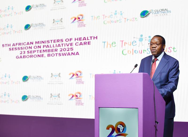 GABORONE, Sept. 25 — Fabian Ndenzako, WHO representative to Botswana and the Southern African Development Community, speaks at the Fifth African Ministers of Health Session on Palliative Care, held as part of the eighth International African Palliative Care and Allied Services Conference, in Gaborone, Botswana, Sept. 23, 2025. The World Health Organization (WHO) on Tuesday called on African countries to prioritize the integration of palliative care into national health systems, making it universally available, accessible, and affordable for all people on the continent.