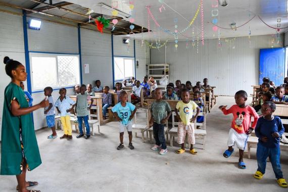 A teacher interacts with children at Ndoumale Nursery and Primary School in Ndoumale village on the outskirts of Kribi, Cameroon, July 10, 2024. (Photo by Kepseu/Xinhua)Ndoumale Village in south Cameroon used to remind people of virtually everything except for development.Upon completion of the infrastructure, a new world of possibilities opened up, breathing new life into the village, which is inhabited by about 600 residents.Children play at Ndoumale Nursery and Primary School in Ndoumale village on the outskirts of Kribi, Cameroon, July 10, 2024. (Photo by Kepseu/Xinhua)NETWORK OF ROADS AND BRIDGESTo reach Ndoumale, one had to trek for at least two hours through a bumpy dirt track."It was a watercourse which did not have a bridge. There was no road," said Henri Bikouo, the traditional leader of the village.Things are different now. As part of its corporate social responsibility, CHEC has constructed roads and bridges in the village."Road to riches because it has opened us up to the world. We now buy goods from other places and more people are relocating and constructing buildings in our village," said 63-year-old Jean Edjanle, a resident of the village.The road network extended to Bagyeli locality of pygmies, an indigenous ethnic group."Sometimes we crossed in a canoe to go to school, but now we go by road. It's good for us," said Marie Belle Ndabouane, wife of the leader of Bagyeli.Children sing songs at Ndoumale Nursery and Primary School in Ndoumale village on the outskirts of Kribi, Cameroon, July 10, 2024. (Photo by Kepseu/Xinhua)CHILDREN'S SCHOOL WITH SIX CLASSROOMSIn Ndoumale, children had to trek for nine km to find the nearest school because there was no learning institution in the village, said Bikouo, whose six children almost dropped out of school as a result of the risk and cost involved in the long journey.There is hope now.When Xinhua reporters arrived in the village, 10-year-old Brian Mengue who wants to become a medical doctor was busy attending classes with his friends at Ndoumale Nursery and Primary School.The six-classroom building used to house CGCOC Chinese workers constructing the water plant, but when they left after completing the project, the building was transformed into a school.It is the lone primary school in the village and it has been functioning for three years."Before, the children could not go to school, but now everyone attends school since it's close (to them)," said 26-year-old Louise Njole Edjenguele, head of the school."School gives a good future, makes you think. I am happy because we have the school here," added Mengue, the pupil.This photo taken on July 10, 2024, shows a view of Ndoumale Nursery and Primary School in Ndoumale village on the outskirts of Kribi, Cameroon.  (Photo by Kepseu/Xinhua)DARK NIGHT ILLUMINATEDWhen night falls in Ndoumale, solar lamps are switched on to illuminate Ndoumale Nursery and Primary School, which now also serves as ceremonial premises in the village. The solar lamps were provided by CHEC to ease the education of the children and night activities in the village."Next year's enrollment in the school will surely increase thanks to the light," said Edjenguele.When it was 6:30 p.m., villagers gathered in one of the classrooms to listen and watch CHEC workers talk about road safety measures on a major highway that CHEC constructed a few kilometers from the village. The villagers cheered with excitement as the solar lamps were switched on."This is so wonderful. We are blessed," shouted one of the villagers in the hall.In Bagyeli, pygmies danced in gaily to welcome the installation of solar panels in the locality. Ndabouane, the wife of the leader of Bagyeli, said that their lives have been transformed since CHEC installed the solar panels."We use it (light) in the kitchen. If you want to prepare you turn it on... and the light can last until the morning and that's good. When children go to school, they will turn on the light. This will also help them to be wise and intelligent in school," Ndabouane said.Bikouo, the traditional leader of Ndoumale Village, is proud of the village's transformation. The 58-year-old said that it was his dream to lift his community out of poverty and achieve prosperity, and that dream is becoming a reality thanks to China-Africa cooperation."We trust them (Chinese) and want to support them in all their projects," said Bikouo.