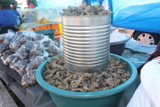 FRANCISTOWN (BOTSWANA), Feb. 17– Photo taken on Feb. 6, 2025 shows mopane worms at a market in Francistown, Botswana. Botswana’s five-pula coin features an engraved image of a mopane worm, a nutritious delicacy popular in southern Africa. But climate change has led to a dramatic decline in mopane worm population, hurting those who rely on harvesting the worms for a living.