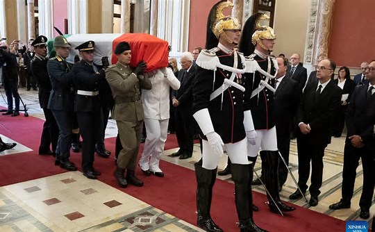 ROME, Sept. 27– The state funeral of Italy’s longest-serving President Giorgio Napolitano, held on Tuesday in the country’s Parliament, was attended by dignitaries from around the world. Napolitano, who was in office between May 2006 and January 2015, died on Friday at the age of 98. Flags on government buildings and Italian embassies abroad flew at half-mast on Tuesday, which was declared a national day of mourning. Parliament was closed for the day, and non-essential state business was halted. Those present at the funeral included French President Emmanuel Macron, German President Frank-Walter Steinmeier, and Sergio Mattarella, who succeeded Napolitano as Italy’s head of state. All extended their condolences to Napolitano’s widow, Clio Maria Bittoni, who was married to the former president for more than 60 years. In remarks at the funeral, Napolitano was honored for a long and varied political career that began when he was elected to the lower house of the Italy’s Parliament in 1953. Napolitano was Italy’s 11th president and the first to serve a second seven-year term. He stepped down two years into his second mandate citing his advanced age and declining health. He was also Italy’s first president who had been a member of the Italian Communist Party. In his most important role as president, Napolitano helped shepherd Italy through the 2011 financial crisis, persuading former European Commissioner Mario Monti to head a technocratic government following the resignation of Silvio Berlusconi as prime minister. Monti was able to negotiate support for Italy’s government debt from the European Central Bank, preventing what would have been an unprecedented loan default. “As head of state, he led the nation, embodying the values that are the foundations of our constitution,” Italy’s Senate President Ignazio La Russa said in remarks during the funeral. Lorenzo Fontana, speaker of the lower house of Parliament, said Napolitano “was among the most important figures in the history of the republic.” Napolitano will be buried in Rome’s Non-Catholic Cemetery.