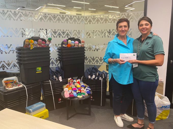 The team of 8 Nedbank employees set target of raising N$10 500 to help Amos Meerkat. Through fundraising efforts, they surpassed their goal and raised a total of N$18 300. The funds were used to buy storage boxes as well durable bags for transporting study materials to remote areas. The money also helped procure stationery packs for learners, including pens, pencils, glue, and rulers. An amount of N$2 000 was also donated to support teacher training expenses and provide knitted dolls for trauma counselling to help affected children overcome personal challenges.