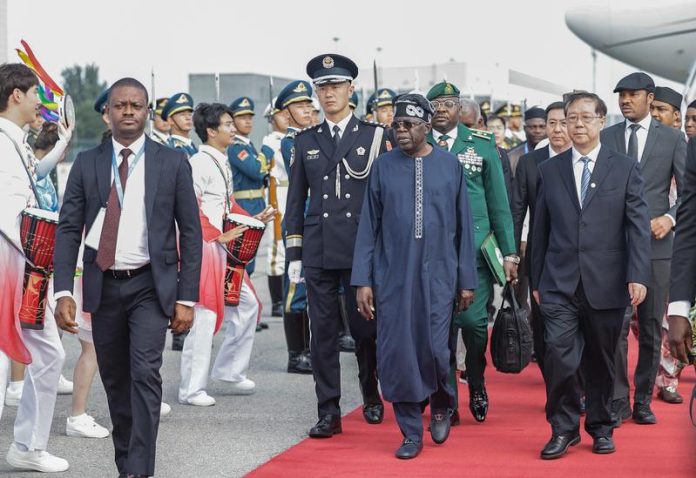BEIJING, Sept. 1, 2024 — Nigerian President Bola Tinubu arrives for the 2024 Summit of the Forum on China-Africa Cooperation (FOCAC) in Beijing, capital of China, Sept. 1, 2024.