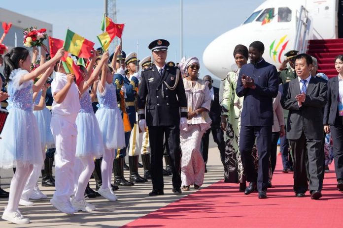 BEIJING, Sept. 2, 2024 — Senegalese President Bassirou Diomaye Faye arrives for the 2024 Summit of the Forum on China-Africa Cooperation (FOCAC) in Beijing, capital of China, Sept. 2, 2024.