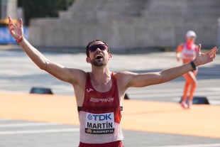 Martin waited near the finish line to hug his teammate Maria Perez, who dominated the women’s 35km race by setting a new Championships record in 2:38:40.