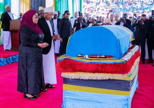 ZANZIBAR, Tanzania, March 4 — Tanzanian President Samia Suluhu Hassan attended the national burial ceremony of former President Ali Hassan Mwinyi on Zanzibar’s Unguja Island on Saturday. “Mr. Mwinyi was a wonderful leader who highlighted the importance of translating leadership into service to people and maintaining diligent and ethical services,” Hassan told mourners. The burial ceremony was also attended by officials, including Tanzania’s Zanzibar President Hussein Ali Mwinyi, the late president’s son, and representatives from Namibia, the Comoros and the East African Community (EAC) secretariat. Mwinyi passed away on Thursday at the age of 98 after battling lung cancer. He served as the second president of Tanzania from 1985 to 1995, succeeding the country’s founding president, Julius Nyerere. In honor of the late president, Hassan declared seven days of national mourning starting Friday, during which all national flags will be flown at half-mast.