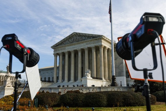Members of the press stake out outside the Supreme Court in Washington, D.C., the United States, Feb. 8, 2024.