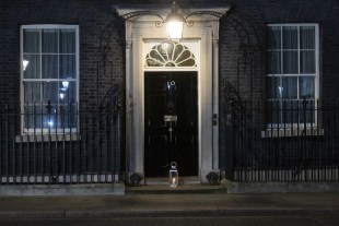 A lantern is seen on the doorstep of 10 Downing Street in London, Britain, on March 23, 2021.