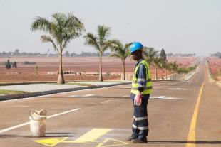 A worker prints lane direction markings on a newly constructed road on the outskirts of Zimbabwe's capital Harare, on July 20, 2024. (Photo by Tafara Mugwara/Xinhua)Zimbabwe is upgrading roads in and around Harare ahead of an August summit of the Southern African Development Community (SADC) in the capital city.This photo taken on July 20, 2024 shows a newly constructed road on the outskirts of Zimbabwe's capital Harare. (Photo by Tafara Mugwara/Xinhua)"It's a welcome development. At least we will now spend less time on the roads with smooth traffic," Wish Gahadza, a Harare resident, told Xinhua on Saturday.Another resident, Tachiveyi Mukonorwi, said the rehabilitation of highways will stimulate economic development. "The good thing is that we are mobilizing domestic resources to build our infrastructure."Other roads leading to the new parliament building are either complete or under reconstruction.Sitting on Mount Hampden on the outskirts of Harare, the six-story parliament building complex was officially handed over to Zimbabwe in October 2023.Efforts are also under way to rehabilitate roads linking the new parliament building with the capital city's Robert Gabriel Mugabe International Airport.In addition, the government is upgrading the country's road network, including the Harare-Chirundu highway that connects Harare with neighboring Zambia.